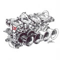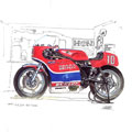 全体をアウトラインを使わずに色の濃淡だけで表現する非常にこった手法です。1枚仕上げるのに2〜3週間要します。細かい部分まですべてフリーハンドで仕上げています。そのため、サイズはA3判に限定させて頂きます。あなたの大切なマシンの細かいディティールまで、正確に再現致します。