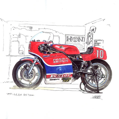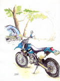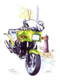 元になる写真を忠実に再現し、そこに彩色を施していきます。あらかじめアウトラインを描けるため、輪郭のはっきりした作品に仕上がります。モータサイクル各誌で最も使われている手法です。価格もリーズナブルで、気軽に楽しむ事ができます。